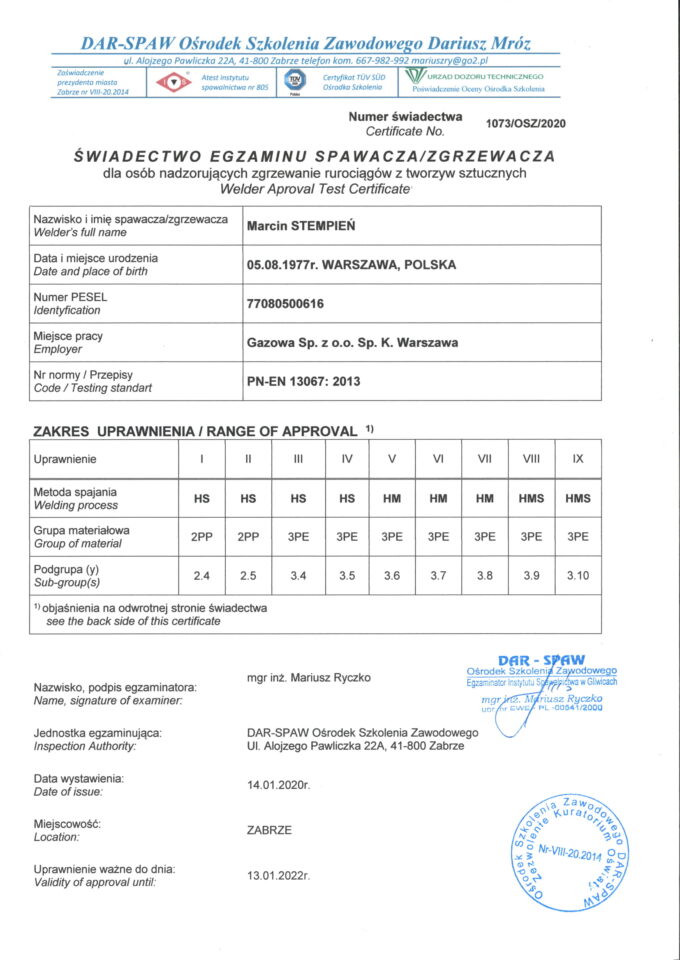 Struktura firmy jest nowa, ale doświadczenie pracowników – duże. Marcin Stempień był założycielem, współwłaścicielem, członkiem zarządu i motorem napędowym w innej gazowej firmie, działającej z powodzeniem w tej branży. Sytuacja na rynku sprawiła, iż podjął nowe wyzwanie w nowej strukturze.